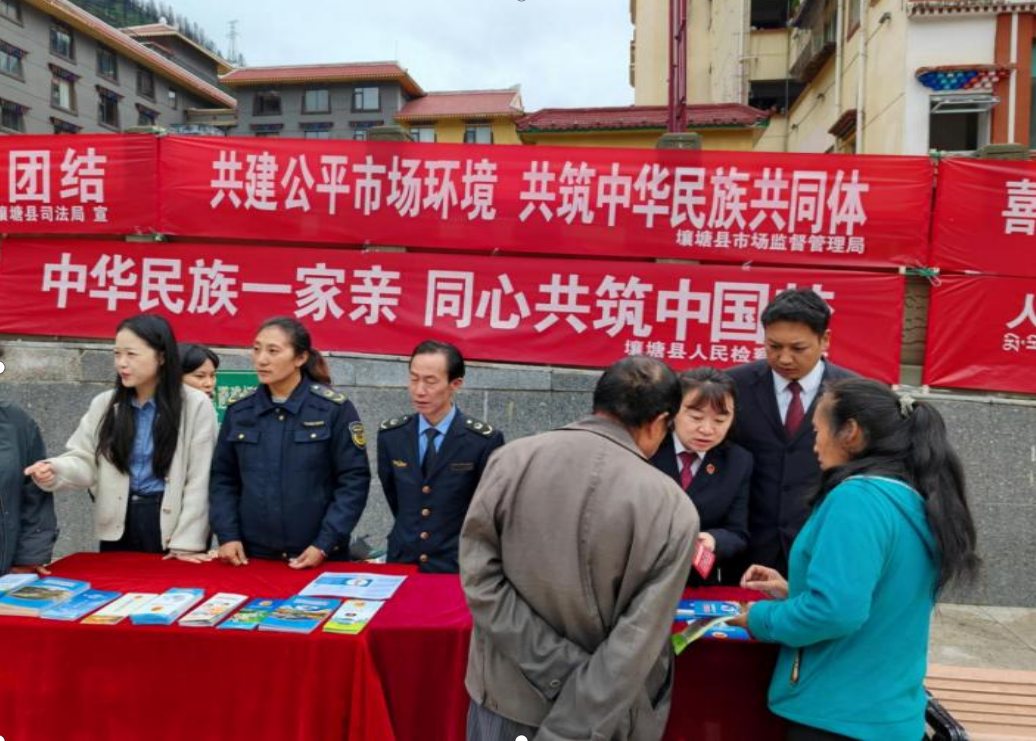 活动现场,我院干警通过发放《阿坝藏族羌族自治州民族团结进步条例》《民族团结应知应会知识》、相关法律法规等宣传资料,现场为群众答疑解惑等形式,用藏汉双语向来往群众广泛宣传党和国家的民族宗教政策,法律法规知识。同时结合检察工作实际,向群众普及民法典、妇女儿童权益保护法、义务教育法等法律法规,并对现场群众提出的问题进行了耐心细致的解答。